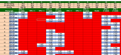 Tải bảng giá chi tiết từng căn và cập nhật giỏ hàng các căn đang còn chưa bán