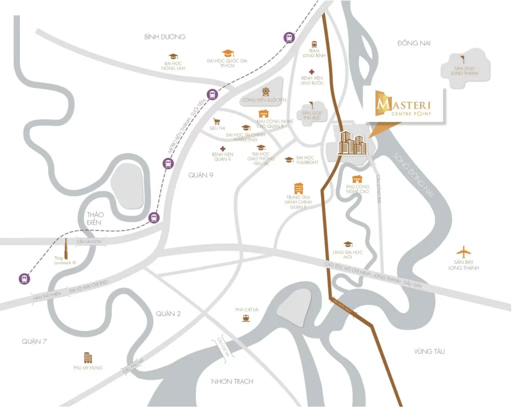 Khu căn hộ Masteri Centre Point được triển khai xây dựng tại vị trí tâm điểm kết nối của đại đô thị Vinhomes Grand Park, với đối diện là TTTM Vincom Mega Mall nơi tập trung các hệ thống nhà hàng, quán ăn, cafe, vui chơi giải trí hàng đầu. Kế bên là trạm Depot Vinbus giúp cư dân thuận tiện di chuyển đến các khu vực trong nội khu và bên ngoài khu đô thị. Thêm vài bước đi bộ cư dân sẽ chạm ngay đến đại công viên 36ha với công viên ánh sáng, biển hồ nhân tạo.. nơi cư dân có thể cắm trại, thả diều, tiệc nướng BBQ, chèo thuyền, chạy bộ, picnic, hay cắm trại vào mỗi dịp cuối tuần.
